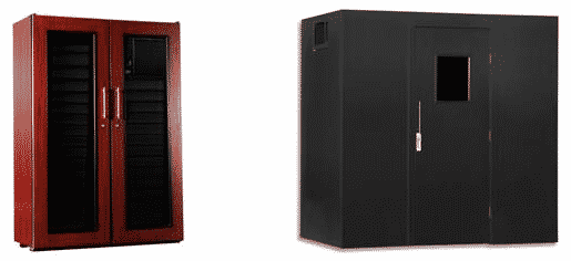 Each cabinet or room includes a CellarPro QT cooling system with adjustable temperature and humidity controls.