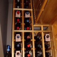 The wine rack in the right wall was constructed with a depth of only 6 inches because it is close to the doorway. It is a single-deep horizontal wine rack that goes all the way up to the level of the door.