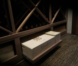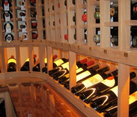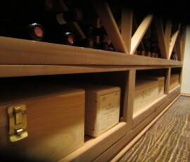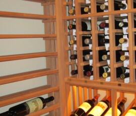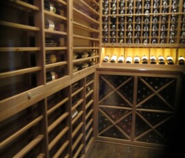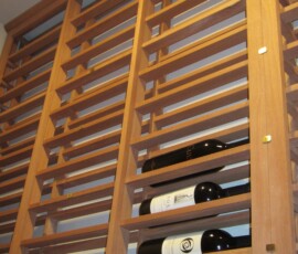 We installed a 6” deep label forward horizontal wine rack, which fitted well on this side. This style of racking displays the bottles with the label facing out, giving the owner convenience in looking for a specific type of wine.