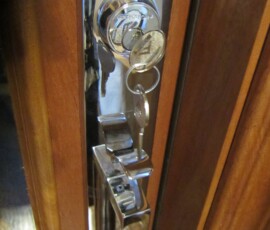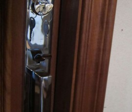 The Vantage style handle set and lock, which are in polished chrome, added a modern touch to the door. We used our 612 casing for the exterior molding of the door.