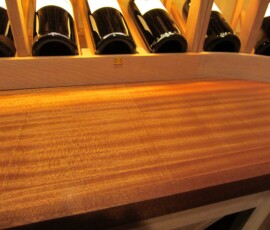 All of the wine racks were manufactured from Sapele Mahogany, with standard crown and base moldings.
