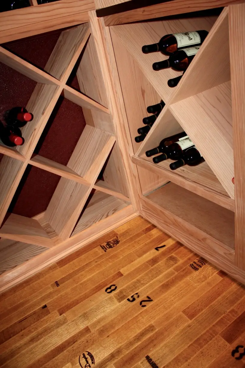 The racks in the wine cellar are in unfinished All Heart Redwood. Known as the finest grade of its kind, All Heart Redwood is less prone to shrinkage. Its stability makes it one of the most sought-after materials among homeowners.