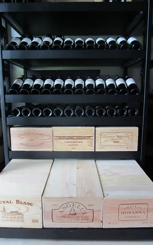 The trays offer versatility, allowing for the storage of standard 750ml bottle, single and double magnums, and original wooden case (OWC) of any size. For our 3-tray sliding metal racks, the wines are stored with the bottom of the bottle facing out.