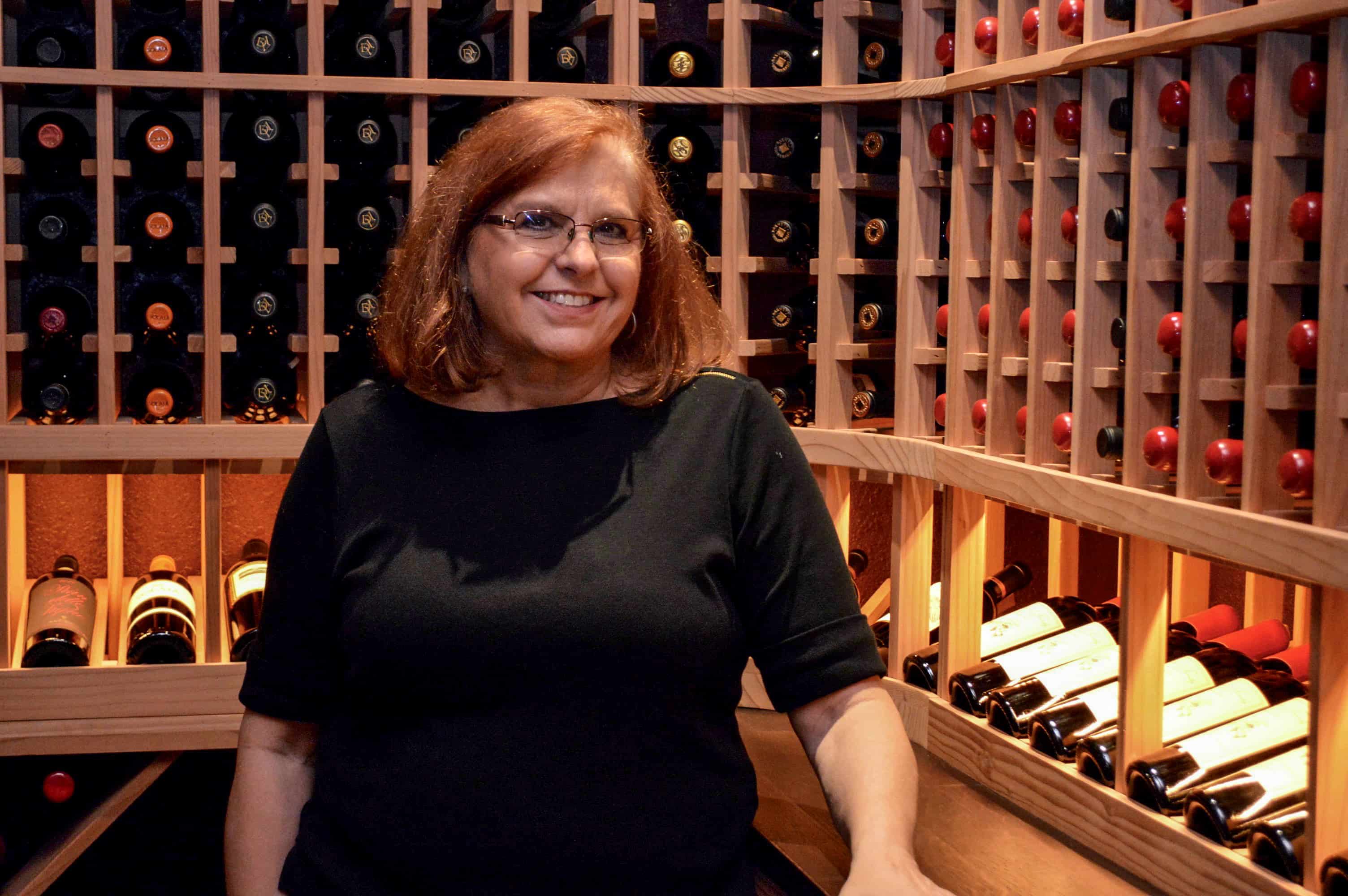 Nancy Higgins, owner of Wine Cellar specialists, inside this Dallas, Fort Worth custom wine cellar they helped build.