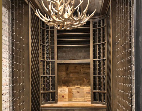 Published May 5, 2020 at 478 × 374 in wood-wine-cellar-with-custom-antler-chandelier-lighting-wine-cellar-specialists1.